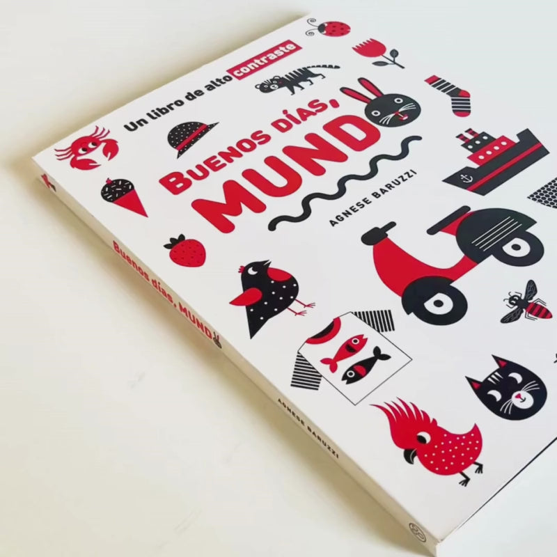 El blanco, el negro y el rojo son los primeros colores que distingue un recién nacido. Este libro, con ilustraciones de alto contraste, estimula la vista de los más pequeños desde sus primeros días.